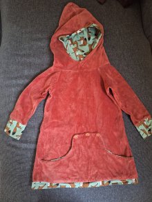 rotes selfmade Kapuzenkleid mit Fuchsmuster
