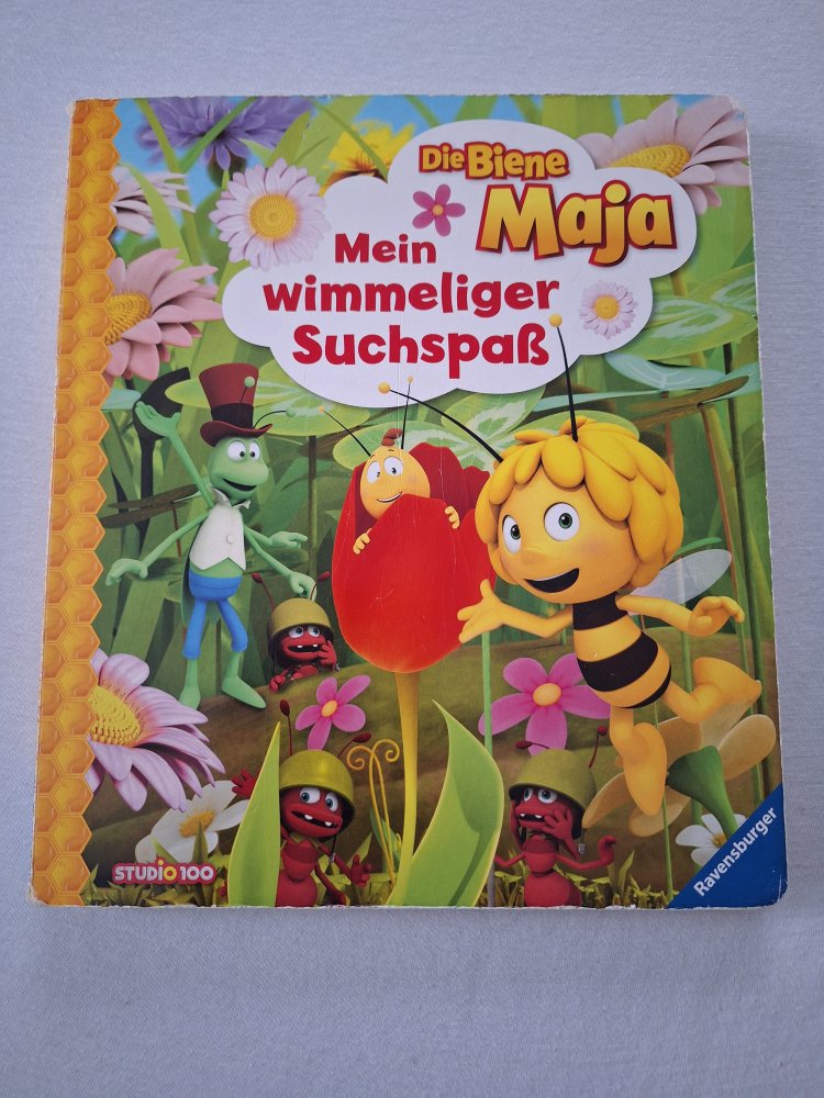 Wo inmitten all der Blumen schläft die Biene Maja? Was ist im Bienenstock los? Wer hat Flips Geige gesehen und wohin hat die Königin ihre Krone verlegt? Gemeinsam mit ihrem Freund Willi erlebt die beliebte Biene einen sonnenschönen Tag voller Abenteuer. Ob im Wald, auf der Klatschmohnwiese oder am Teich: Überall gibt es viel zu entdecken! Neben allen bekannten Wiesenbewohnern verstecken sich in diesem Wimmelbuch zahlreiche Suchgegenstände, die es zu finden gilt.