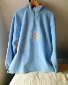 Vintage Fleecepullover Pullover Sweater Sweatshirt Tribal Mandala hellblau weich kuschelig Stickerei bestickt XL 42