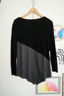 Longsleeve Langarmshirt schwarz grau Colorblocking asymmetrisch zipfelig Zipfelshirt M 38