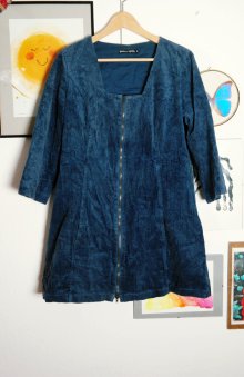Gudrun Sjöden Cord Minikleid Cordkleid dunkelblau Reißverschluss Baumwolle Tunika M L 38 40