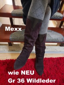 neuwertig Mexx Damen Stiefel Wildleder weich Boots lila Gr 36