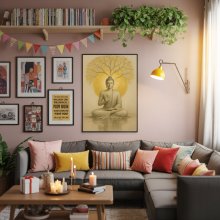 Digitales Poster Buddha unter goldenen Baum – Meditation Yoga – JPEG 300dpi