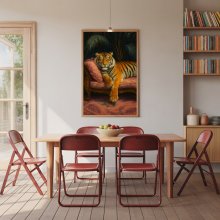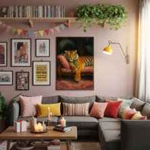 Digitales Poster Tiger auf Sofa – Vintage Dschungel Kunst – JPEG 300dpi