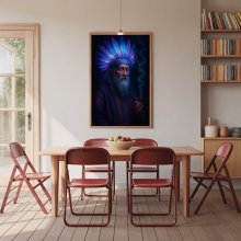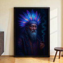 Digitales Poster Schamane mit Federkrone Neon – Spirit Art – JPEG 300dpi