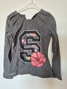 Desigual: graues gerafftes Shirt mit bunter Applikation Gr. 134/140