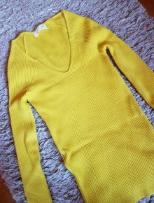 Gelber Strickpullover mit V-Ausschnitt