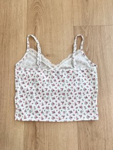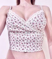Sexy Damen geblümtes ditsy flower Y2K bauchfreies Camisole Crop Top Weiß Spitze XS