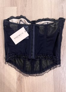 Sexy Damen Y2K Bandeau Tube Korsett Top Lingerie Style Spitze Mesh S/M