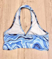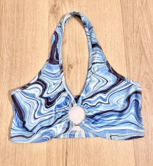 Sexy Damen Marmorprint Retro Hippie Y2K Neckholder bauchfreies Crop Top Bralette Blau O-Ring XS