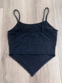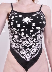 Sexy Damen Y2K Bandana Crop Top Zipfel Asymmetrisch Hip Hop Retro Streetstyle Schwarz Weiß XS