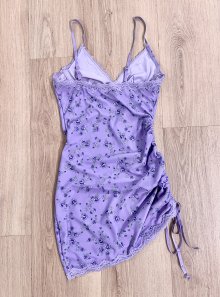 Sexy Damen Bodycon gerafftes asymmetrisches Minikleid Ditsy Flower Cottagecore Lila XS