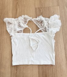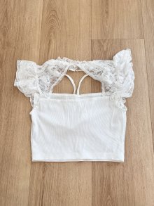Sexy Damen süßes Lolita Doll Kawaii Crop T-Shirt mit Spitze Weiß XS
