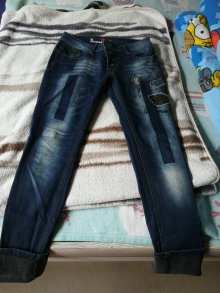 neue Jeans mit schwarzen Einsätzen an den Seiten Gr. 34