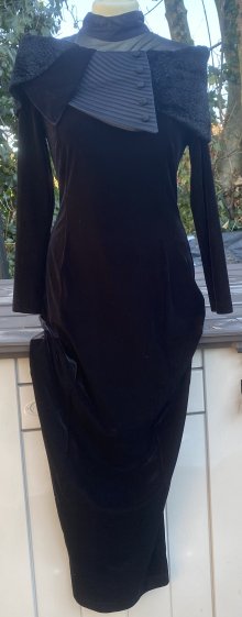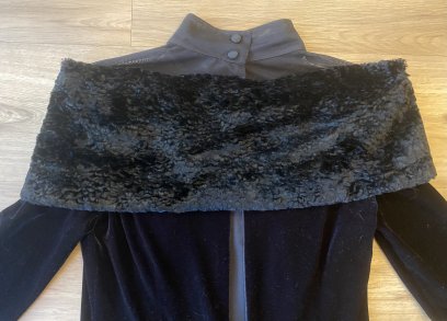 NEU Damen Kleid Samt-Abendkleid Maxi mit Kunstfell-Cape & Tüllkragen Gr.S in schwarz von ENIS