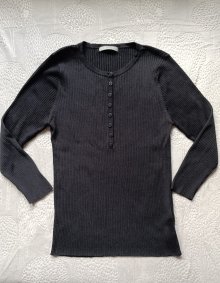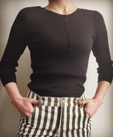 Marks & Spencer Geripptes Viskose-Langarmshirt/Henley (Schwarz) – Gr. UK 12/M
