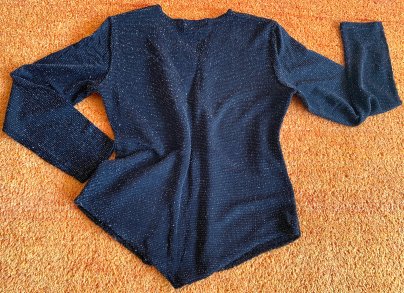 Zipfeliger Strickpullover in blau und silber, Gr.S