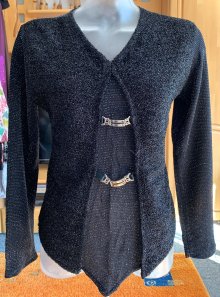 Damen Pullover Long fein Strick ???? Gr.XL Schwarz/Glitzer gestreift von Ump