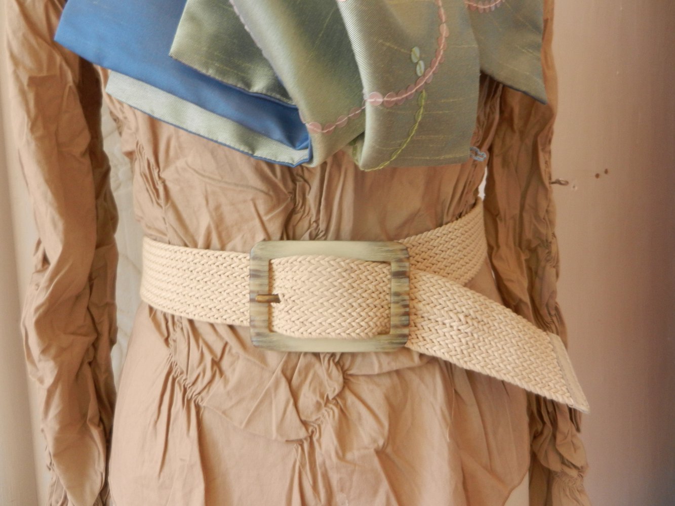 Beige Strickgürtel mit Hornschnalle ca. 40er bis 70er Jahre, guter Zustand