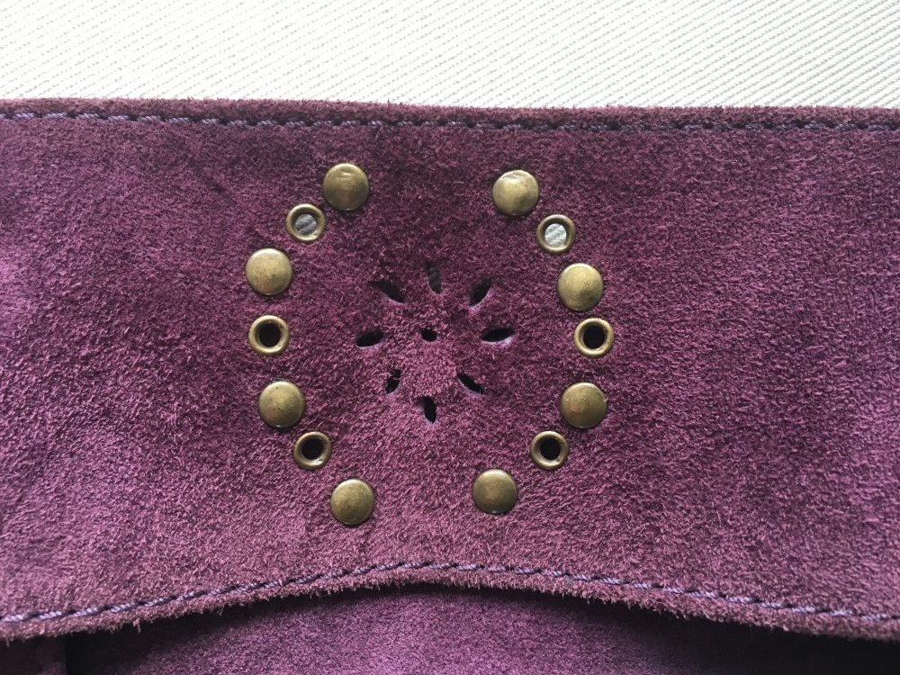 Lila Wildlederlook mit Metalldeko - 80er Chic im Original!