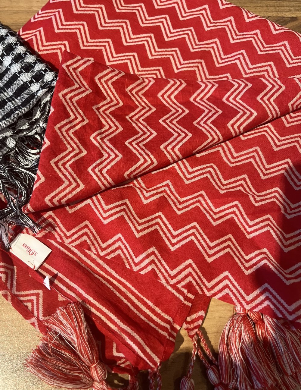 2 S.Oliver Tücher Schals mit Fransen und Bommeln rot schwarz weiß