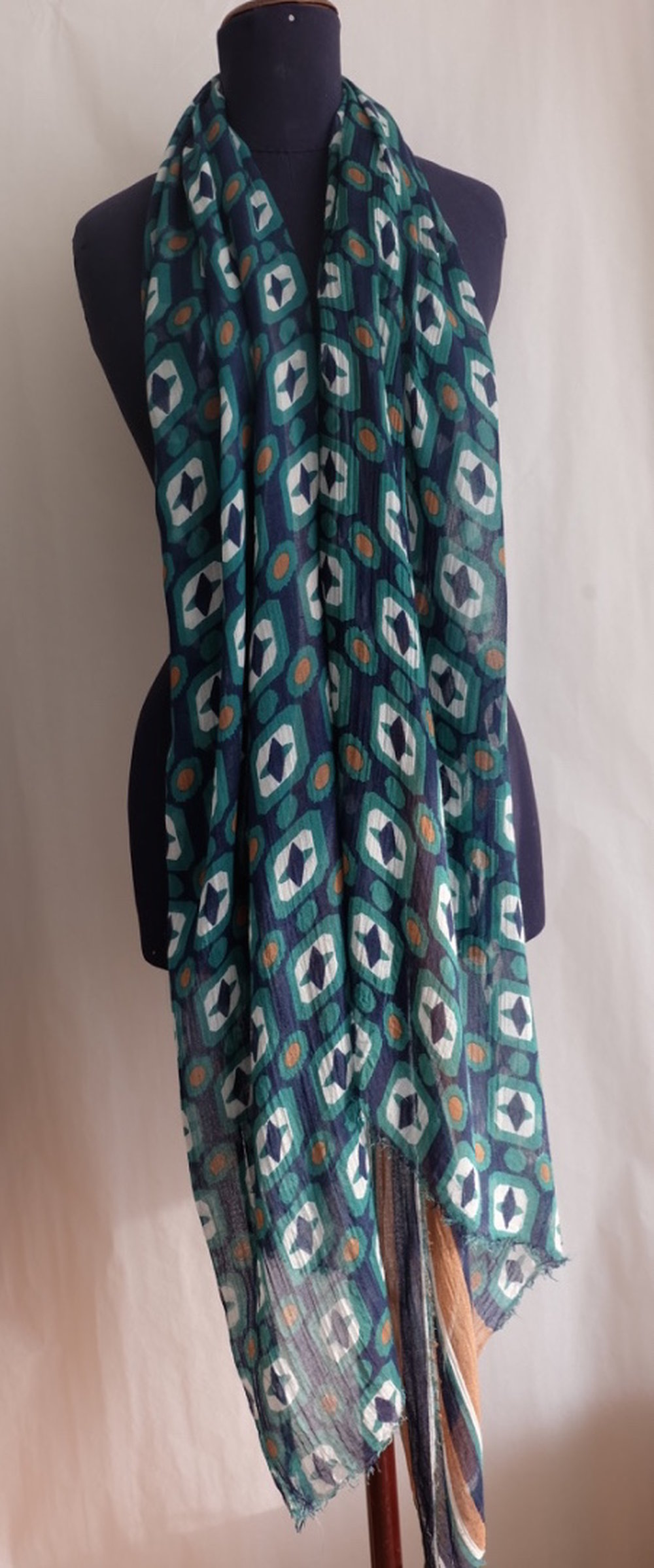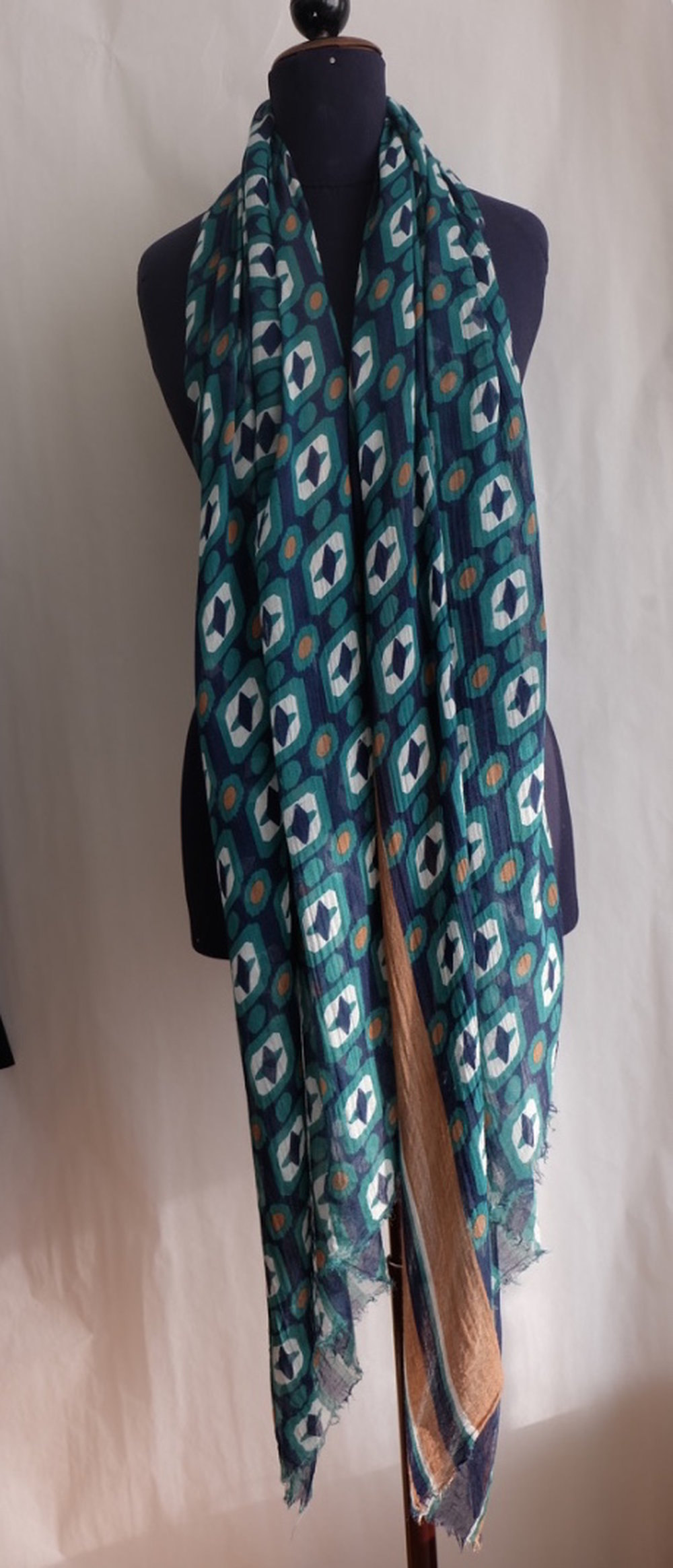XXL Tuch, Schal, Stola, Jadegrün/ Turkisgrün, Blau, weiss, Camel bedruckt