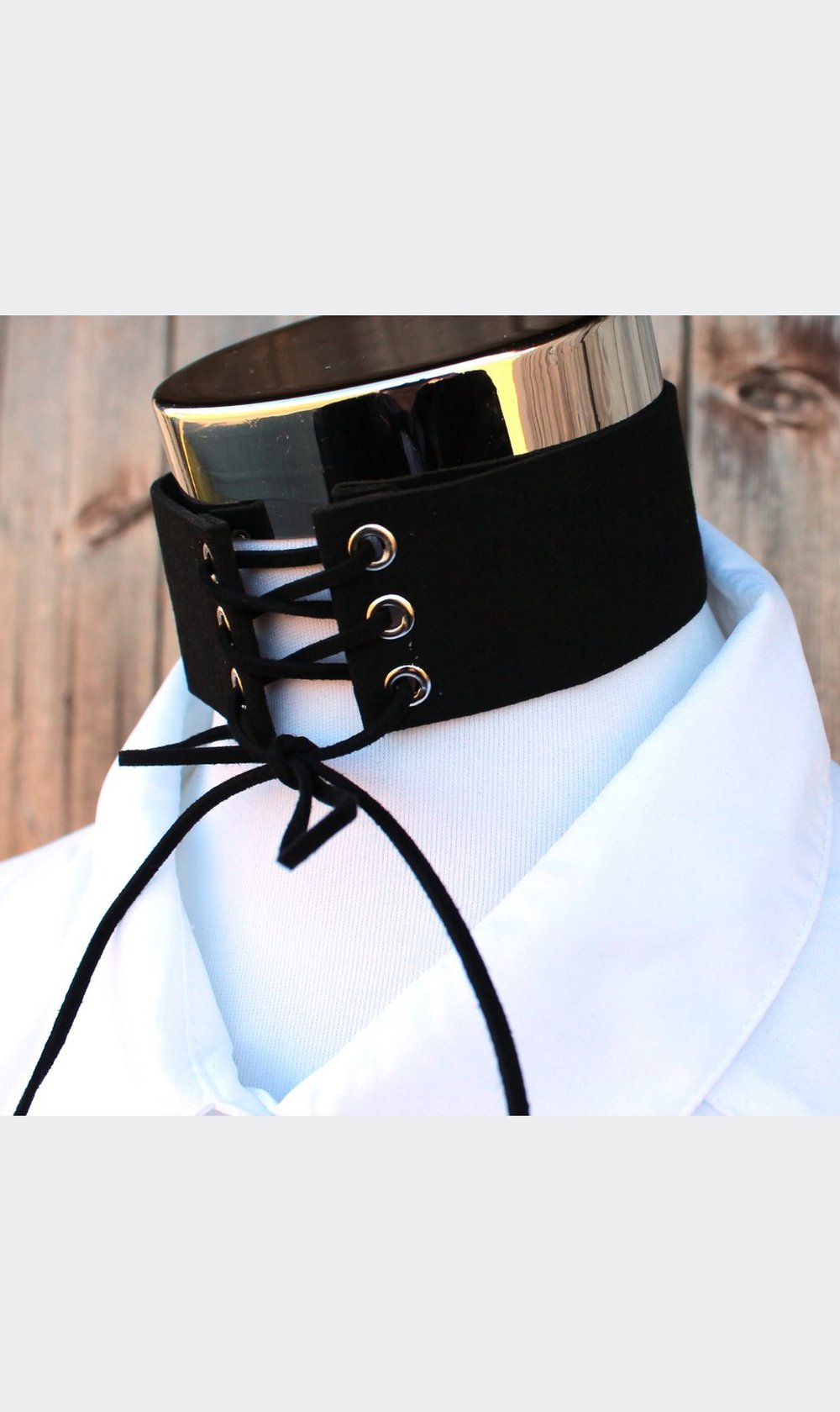 neuer, breiter, schwarzer Faux Wildleder Choker mit Schnürung