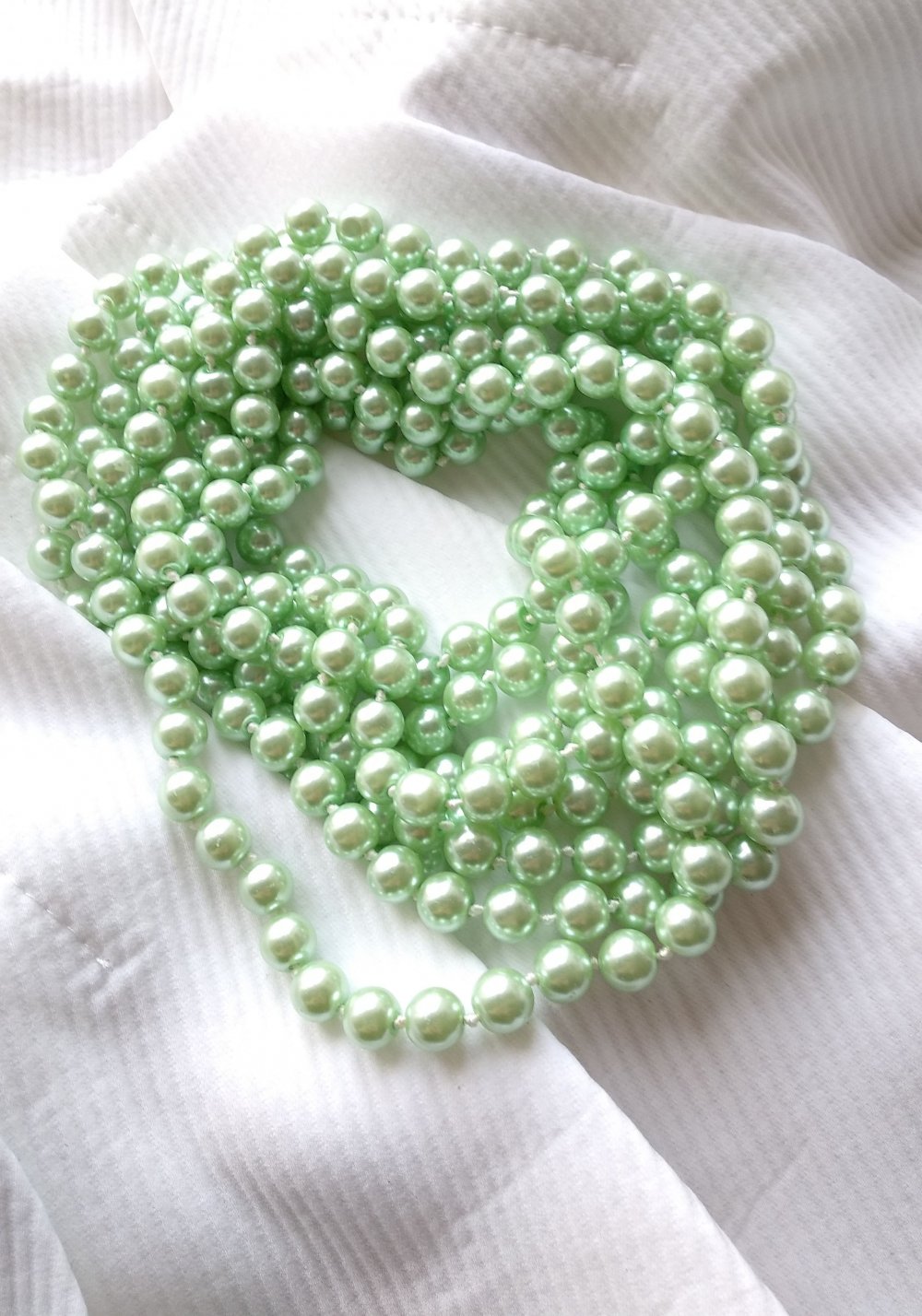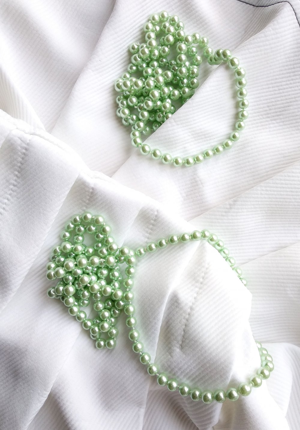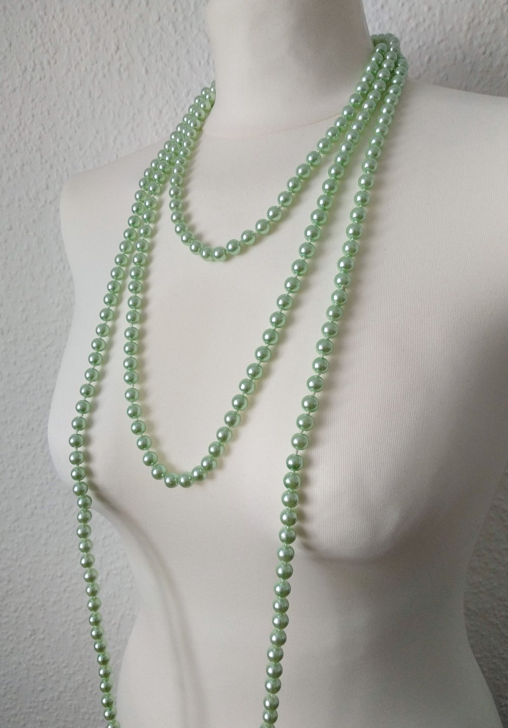 Eigenschaften: Set aus 2 gleichlangen Perlenketten, extra lang (zusammen knapp 300 Perlen :) ), extra glänzend, klimpern schön beim Tragen - perfekt für Pinup-, Retro-, Burlesque-Outfits, Kostüme, als elegantes Accessoire