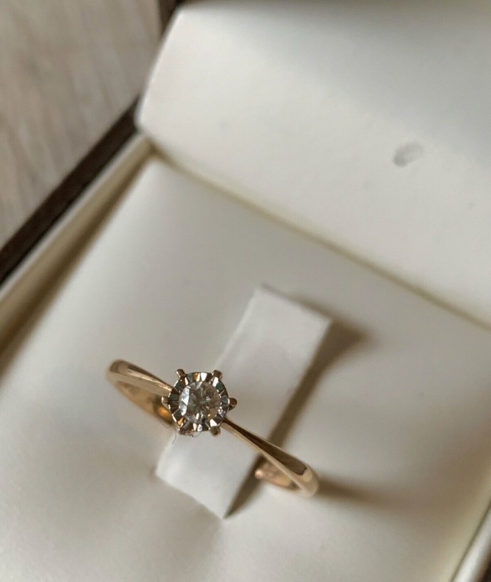 Der Ring wurde ein Jahr lang getragen und hat daher kaum Gebrauchsspuren. Eventuell kommt eine Politur beim Juwelier in Frage, dann sollte der Ring wieder wie neu aussehen.