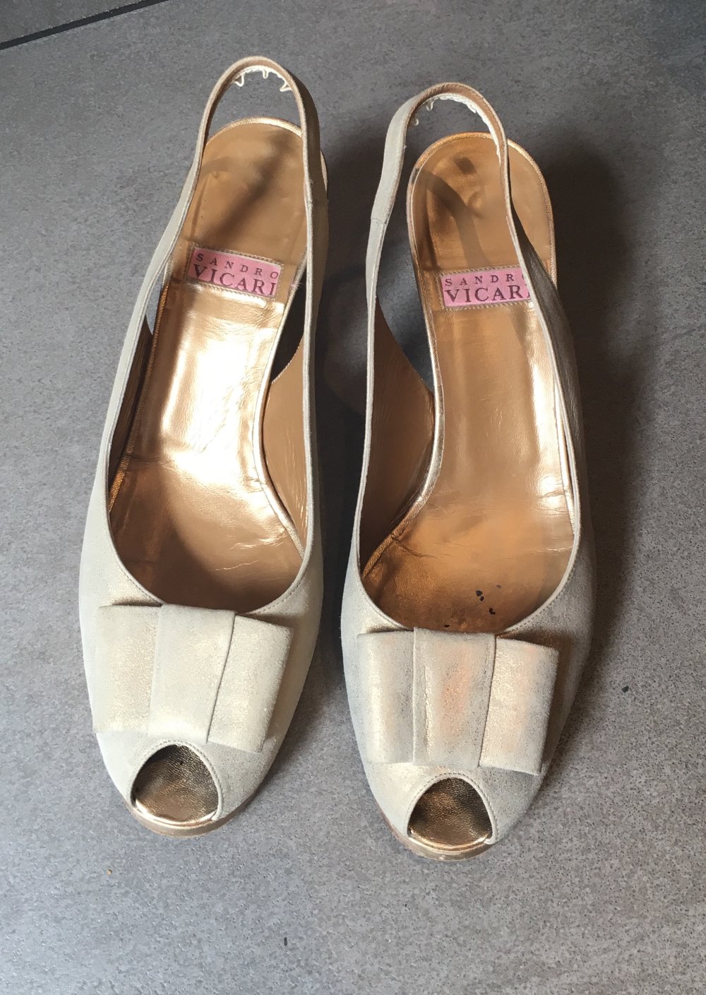 Vicari, ital. Leder Peeptoe, goldmetallic, Gr.38,5