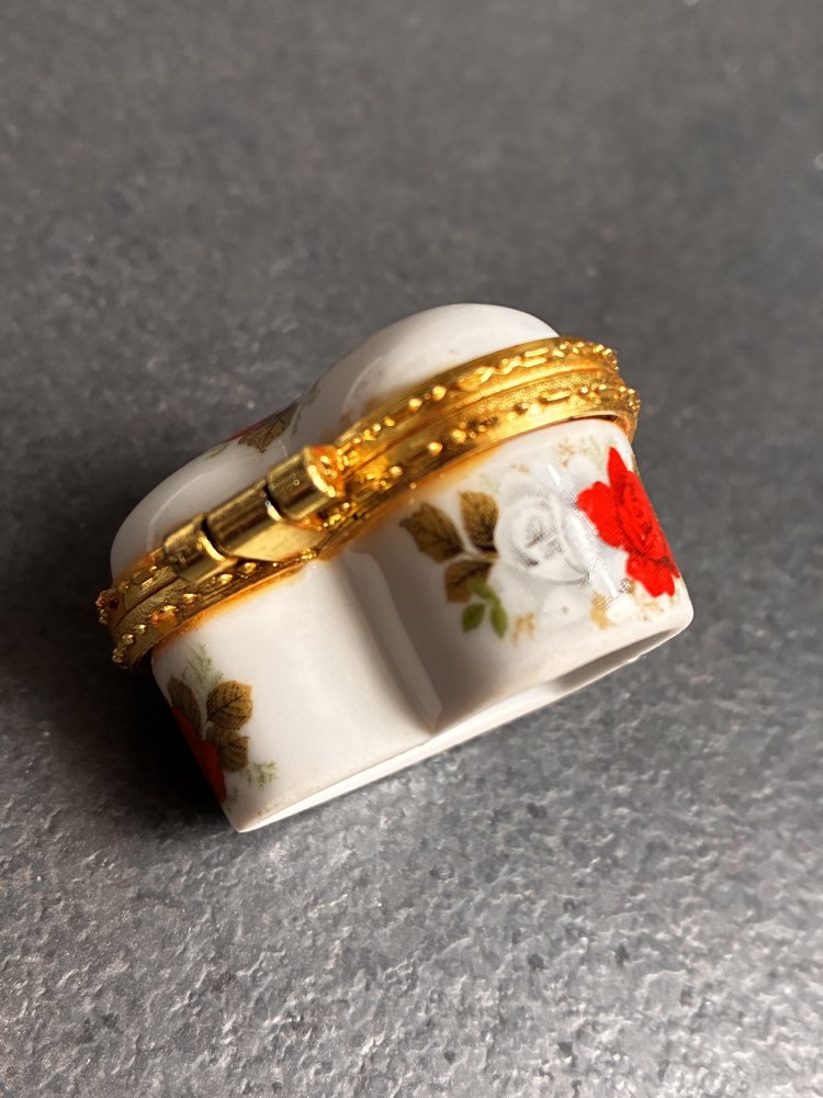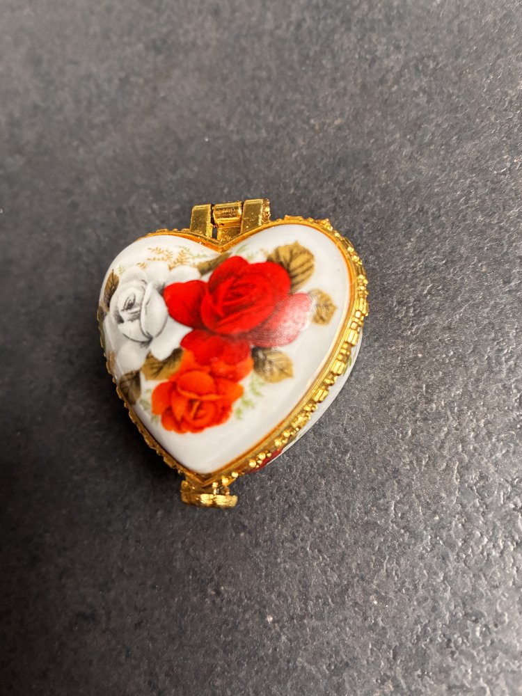 Deko Herz Dose Schmuckdose Deckeldose Keramik Pillendose Herz Rosenblüten Decor Neu