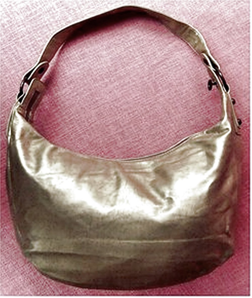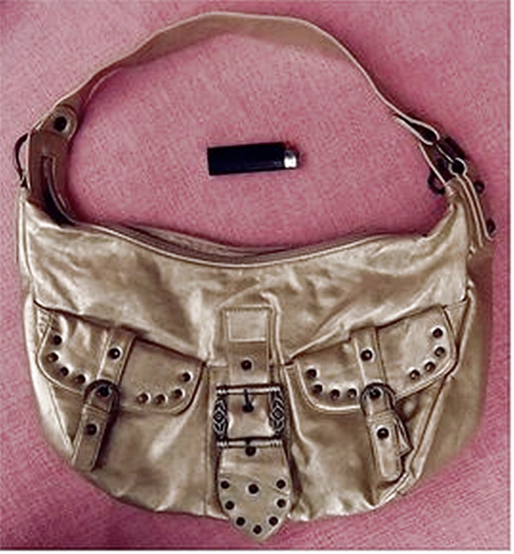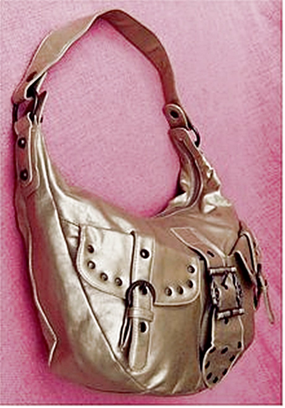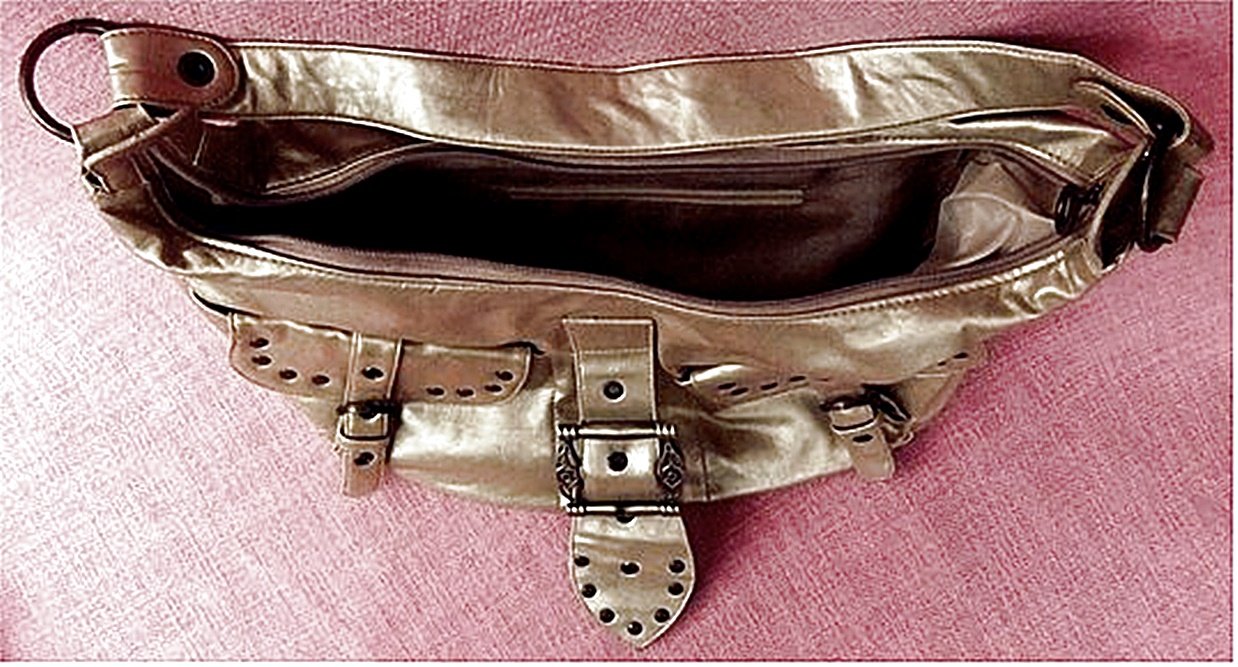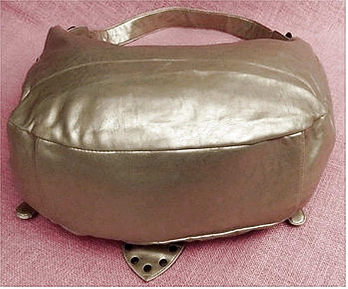 Damen-Handtasche hell goldfarbig - Mit vorderen Nieten- / Gurt-Applikationen