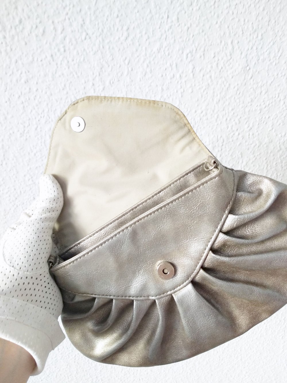 Silber metallic Clutch Handtasche Kunstleder Magnetverschluss vintage Look