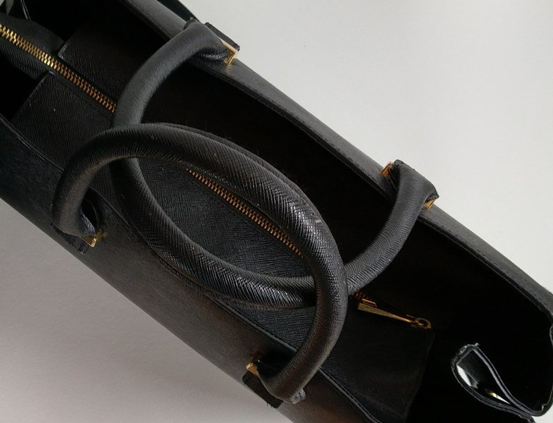 schwarze Handtasche mit Reißverschlüssen und Innentaschen
