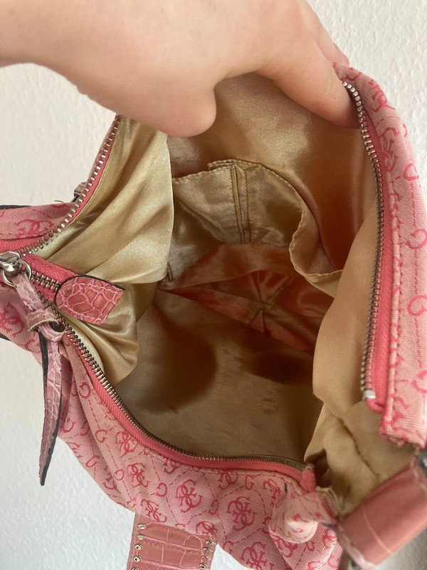 pink guess Monogramm Tasche 2000s y2k baguette bag schultertasche