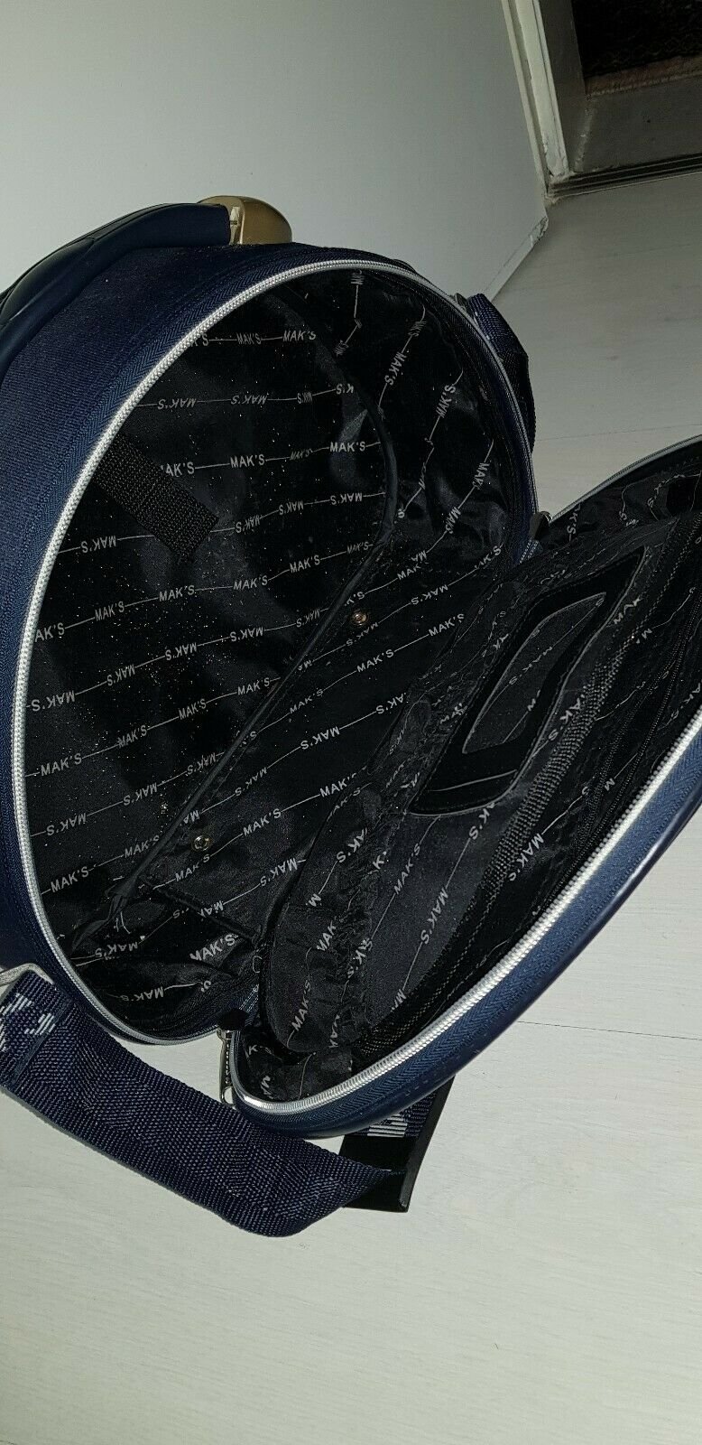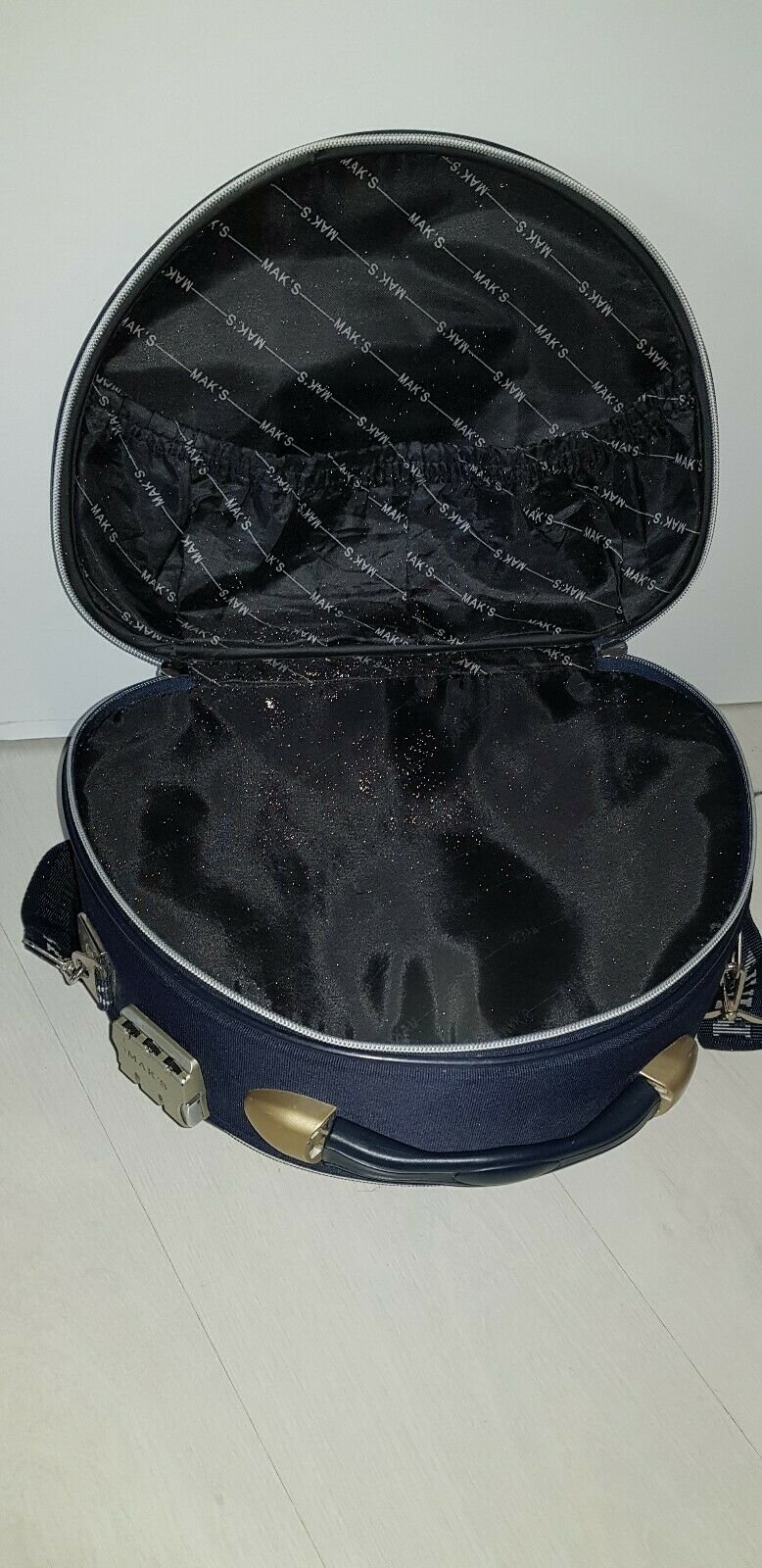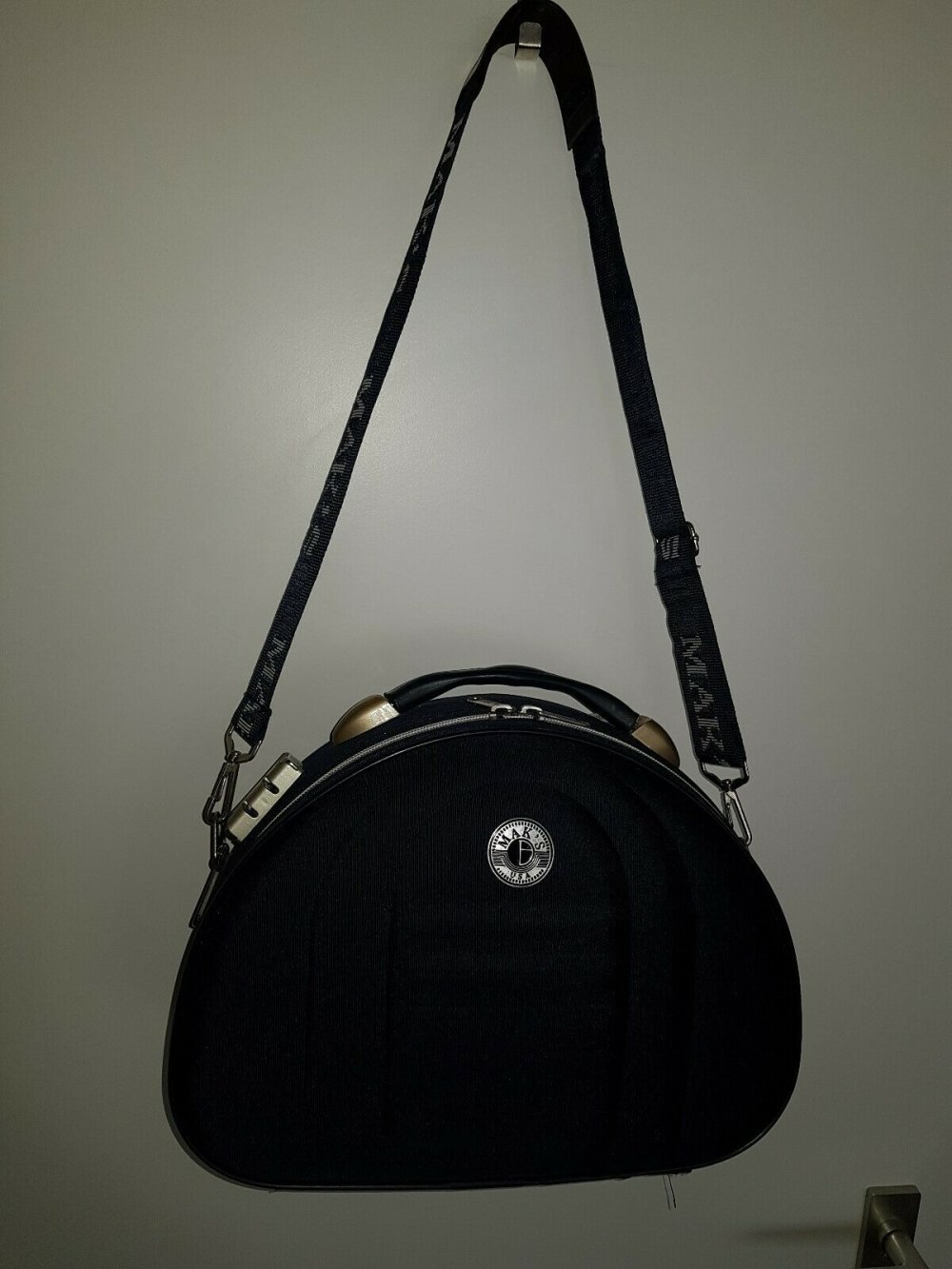 Biete diesen tollen Cosmetic Bag, der viel Platz bietet, auch im Einsatz war, besitzt verstellbare Trägerriemen und zwei große Fächer mit Firmenlogo.
