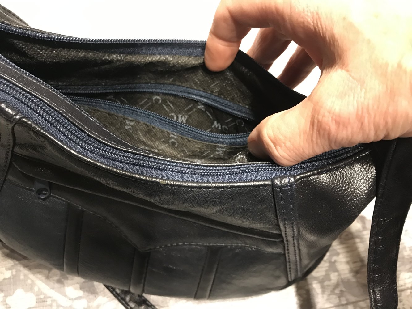 Praktische Umhängetasche mit Zipperverschlussfächer. Leder! Markenware:MC