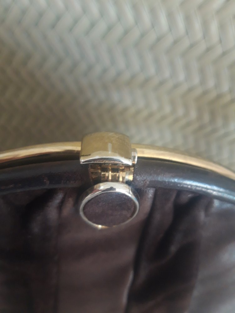 braune elegante Vintage Umhängetasche mit goldfarbenem Schiebeverschluss (siehe Fotos)