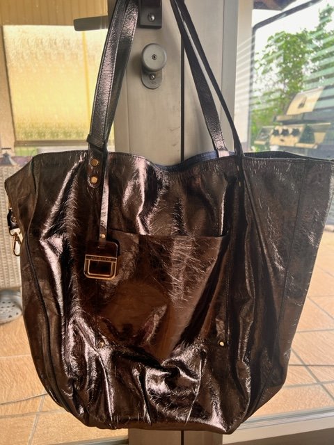 Tasche Bronze glänzend; kann von 2 Seiten genutzt werden (sehr elegant oder Freizeitlook in Jeans)