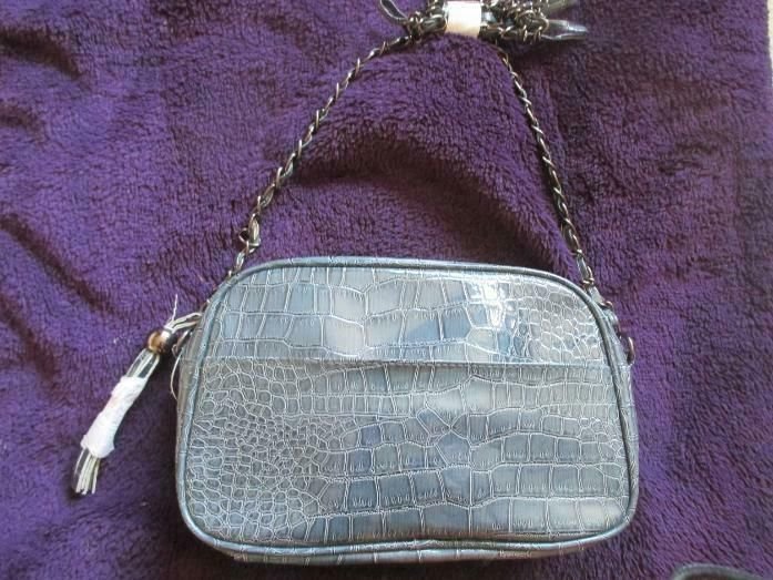 NEU * Abend * Ausgeh * Freizeit * Lack- Leder Imitat * Animal * Kr..o Style * DESIGNER * Cross Body bag * Umhänge- Hand- TASCHE mit Kettenband * rauch- grau- blau *