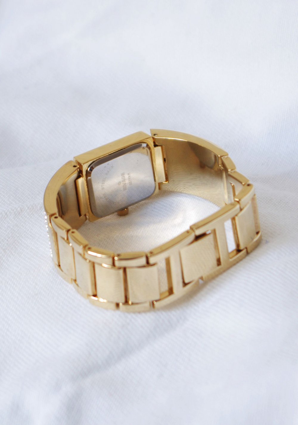 Goldene Armbanduhr retro verstellbar Pinup Damenuhr Metall Gliederarmband