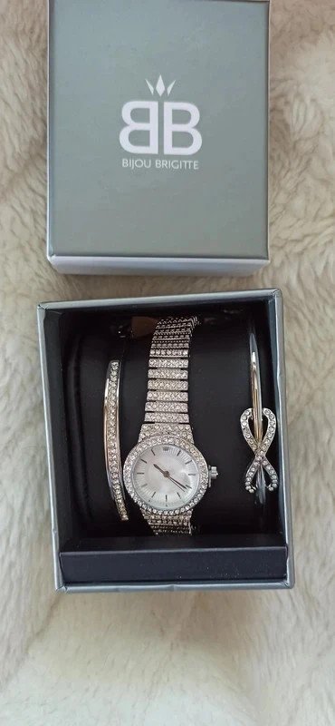 ungetragen Neu. die Größe und Material siehe Fotos. Neupreis lag bei 60 Euro. Zwei Armreifen eine Uhr.