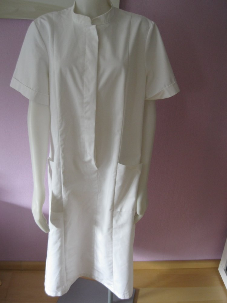 Klinik-Kittel / Kasack kurzam, weiß mit Stehkragen