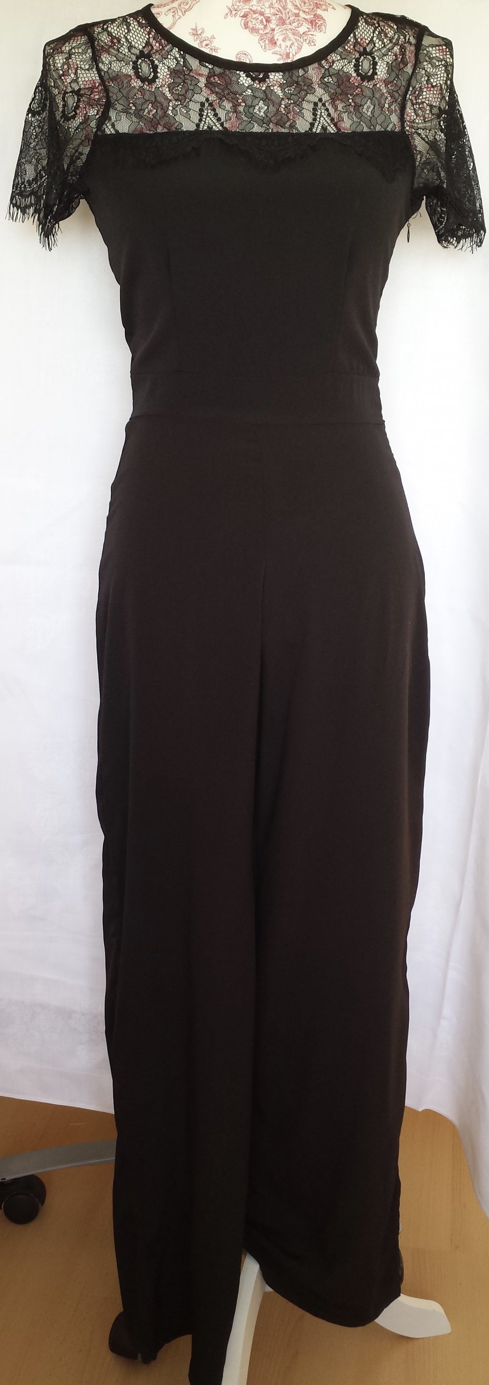 Jumpsuit schwarz Größe Gr 32 34 36 Spitze lace Einteiler Overall lang Damen Frauen schick Hochzeit Gr