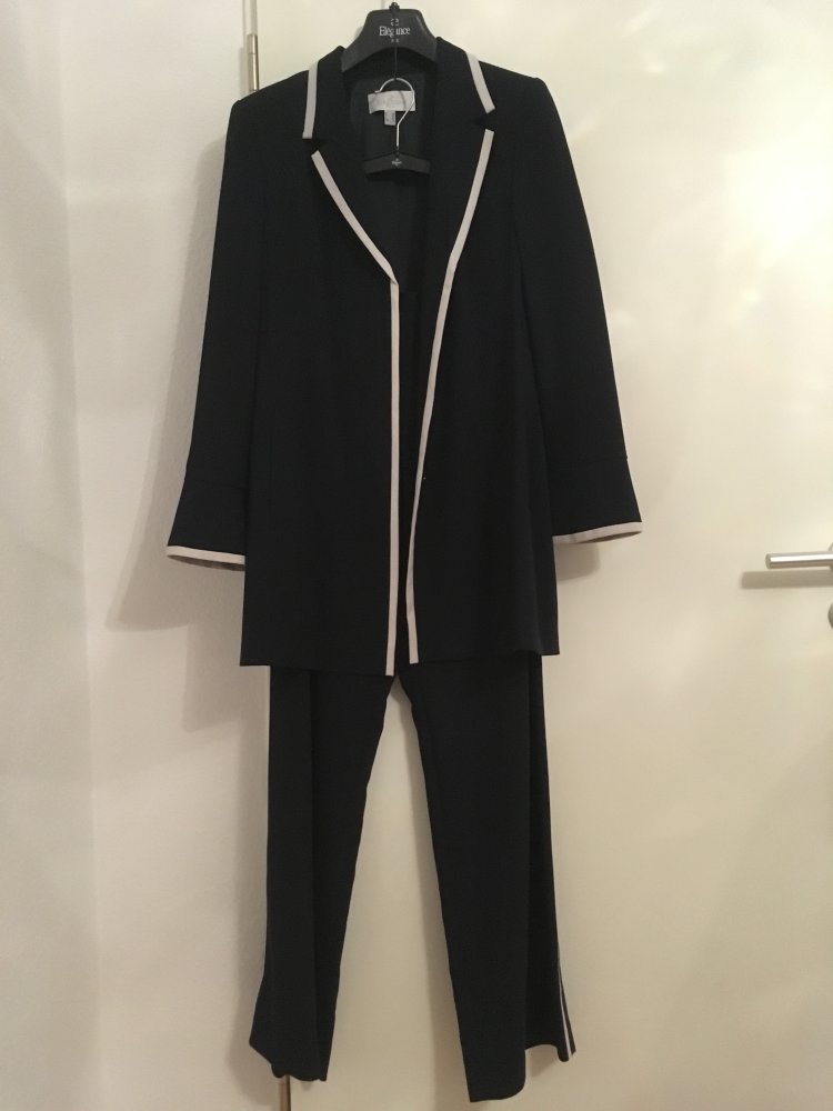 #neu #Elégance #schurwolle #hosenanzug #hose #anzug #blazer #jacke #blau #dunkelblau #weiß #größe40 #L #knöpfe #reißverschluss