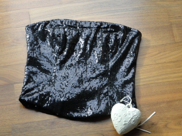 Soooo tolle APART Corsage mit Pailletten ~* Gr. 38 ~* schwarz ~* allover mit kleinen Pailletten bestickt ~* Silikonband innen an der Oberkante, damit sie auch wirklich perfekt sitzt ~* seitlich eingearbeitete Stäbchen ~* Reißverschluss ~* abnehmbare und verstellbare Träger ~* Länge in der hinteren Mitte: ca. 30 cm ~* Netz und Jerseyfutter aus 100% Polyester ~* Waschbar ~*