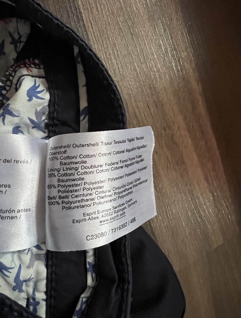 Dunkelblaue Hose mit Gürtel von Esprit, Gr. 38. Getragen, Zustand siehe Bilder. Ich habe keine Flecken oder Löcher entdeckt. Bei Fragen gerne melden.
