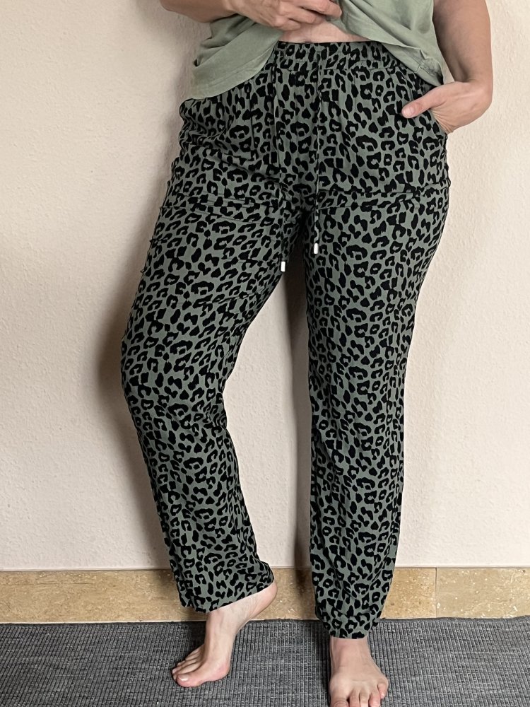 Calze del Mondo Leoprint Jogger Gr.L Farbe Khaki Schwarz, mit 2 Seitentaschen,