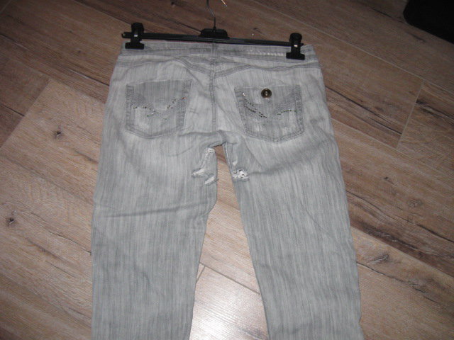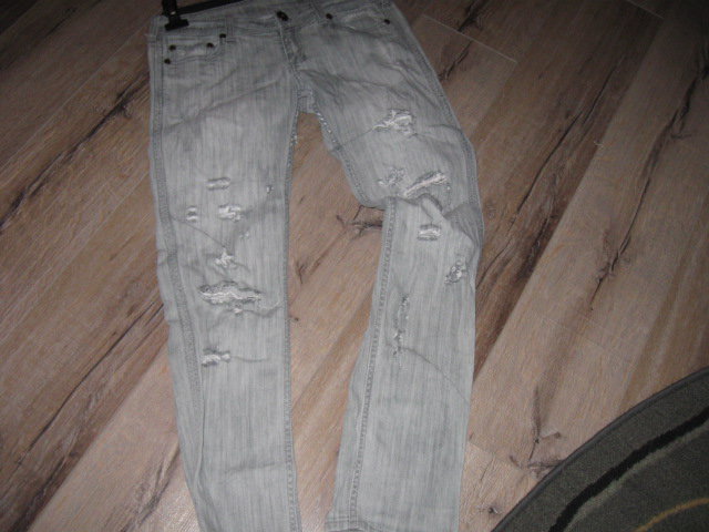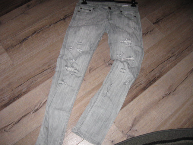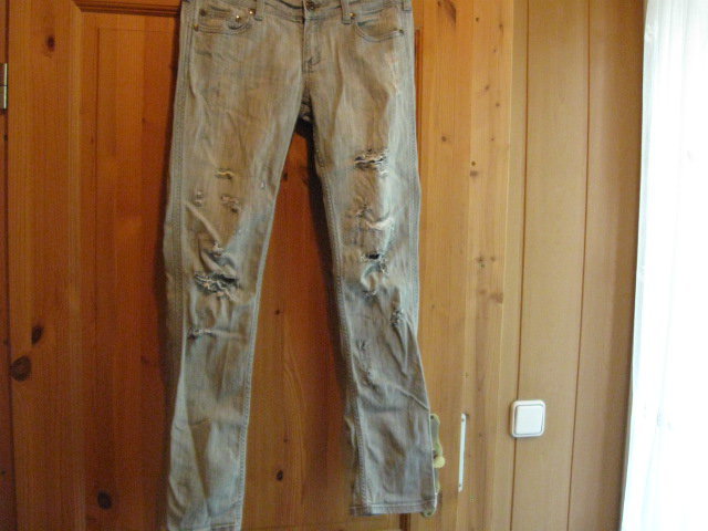 Biete diese gerade geschnittene Jeans, mit Löchern, die nicht mit Stoff unterlegt sind. Sie wurde viel getragen. Hier noch einige Maßangaben: