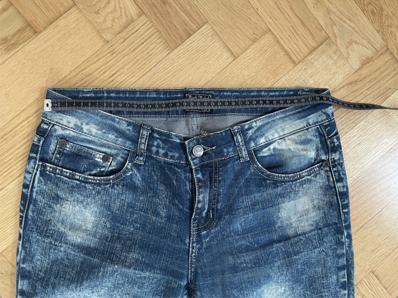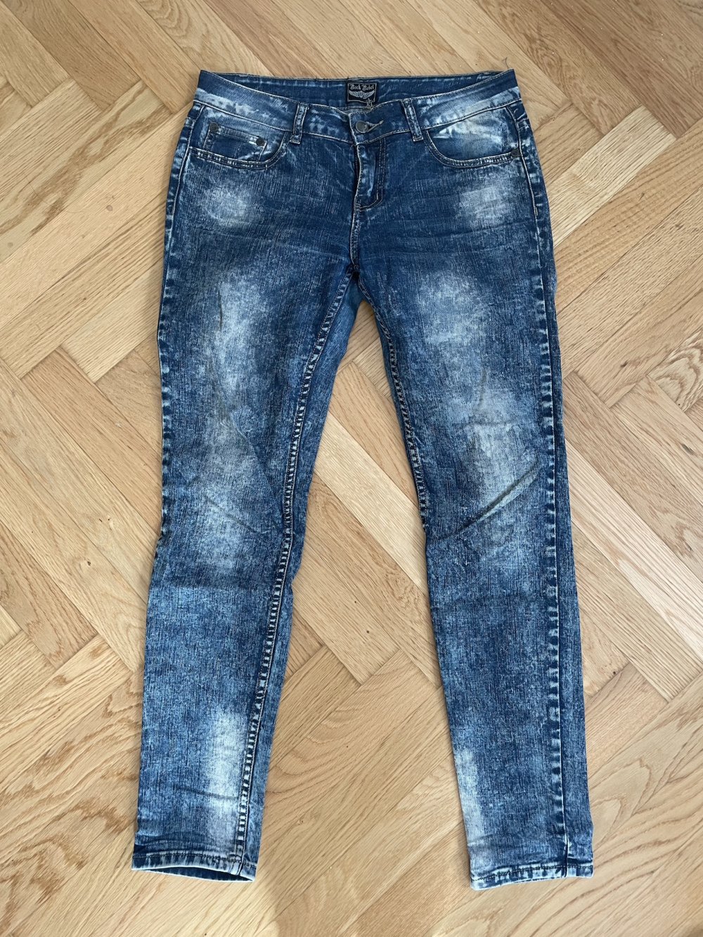 Ungetragene Jeans von Rock Rebel by EMP. Durch die Waschung hat sie einen etwas rockigeren Touch, das Logo hinten ist auf einem Lederpatch mit Rock-Rebel-Anhänger angebracht